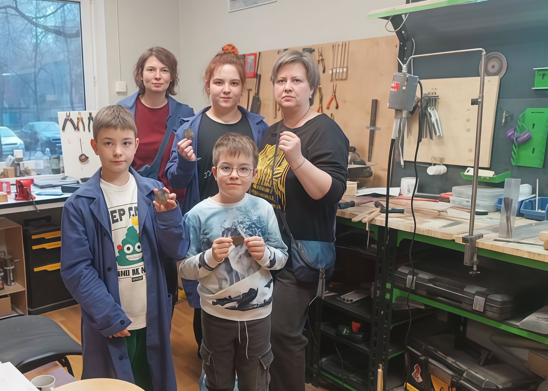 Ребята и взрослые учились древней технике чеканки. Под руководством мастера из кусочка металла рождается уникальный узор. Это настоящая магия, когда своими руками создаешь будущее украшение!