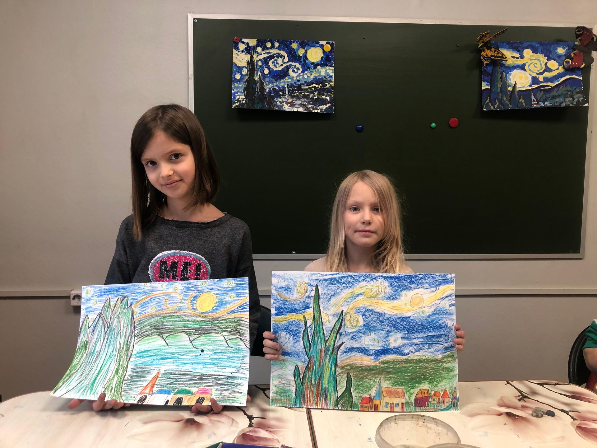 Картины наших юных импрессионистов продолжают творческие искания Ван Гога о двуединстве существования, где свет и тень, буря и покой, жизнь и смерть существуют бок о бок, дополняя друг друга... Посмотрите, какая красота у нас получилась!