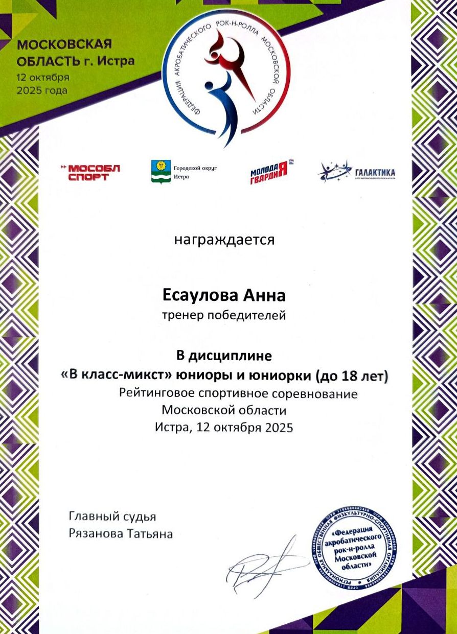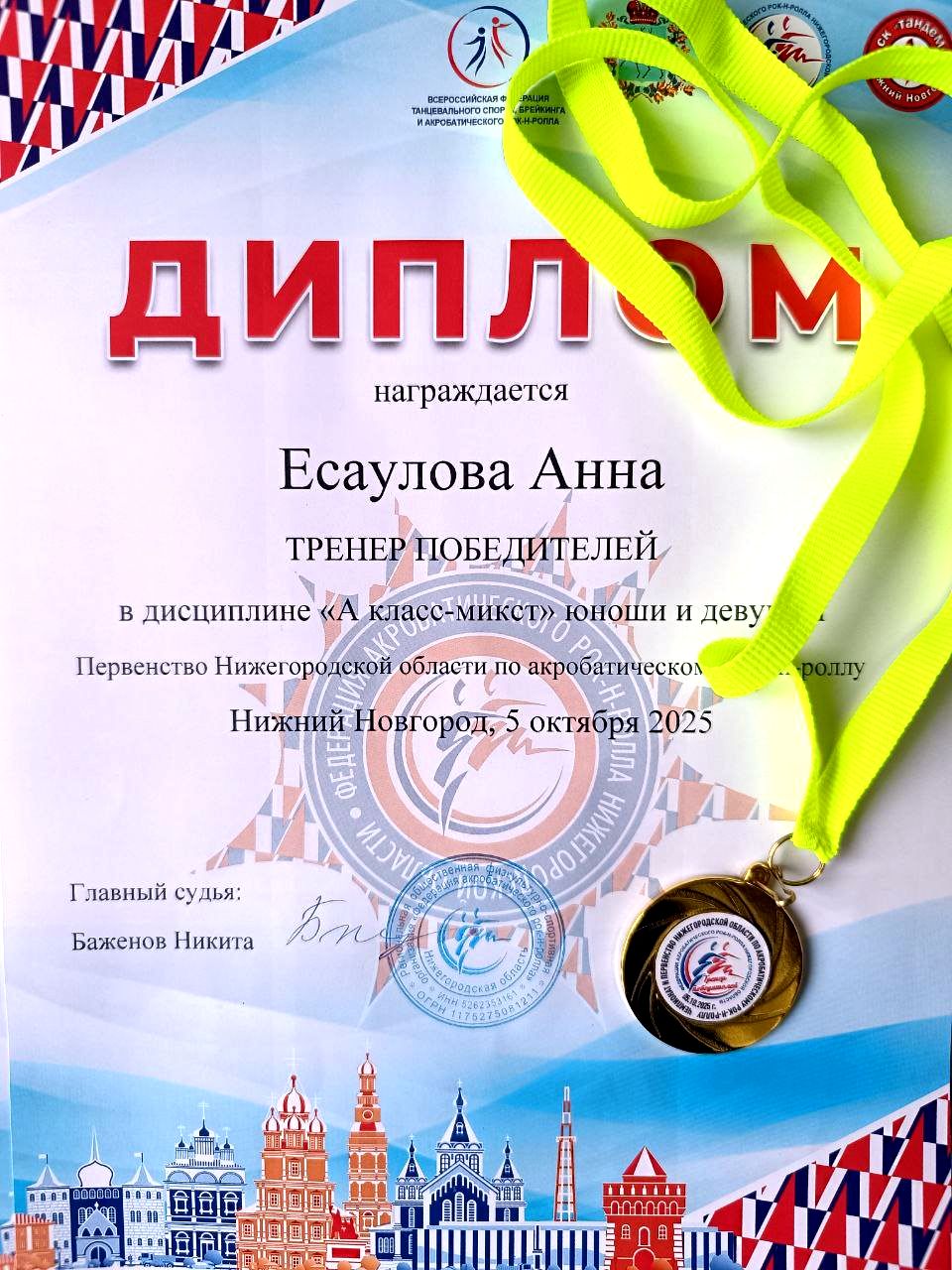 - Тренер-преподаватель с 18 летним стажем, в числе воспитанников победители и призёры чемпионатов мира и Европы, России, мастера спорта.